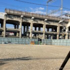JR河内永和駅のホームからのぞいてみると、青のカラーコーンが設置されています。これからなにか重機を入れて、となる見込み。