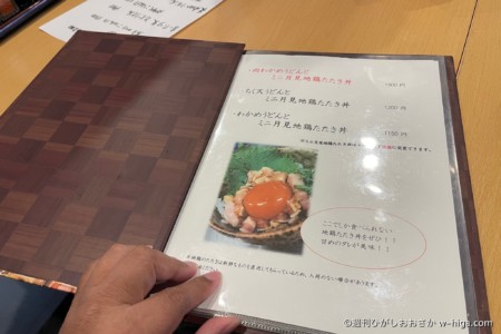 特に最近人気なのは「ミニ月見地鶏たたき丼」。常に鶏肉の質にこだわり続けるやきとり店ならではの鶏肉のたたきと、宝石のように輝く卵黄は「うどん千代」のキラーコンテンツです。