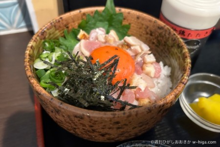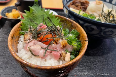 ミニ月見地鶏たたき丼(小)も頼み、鶏まみれセットを勝手に実現しました。推し活最高。