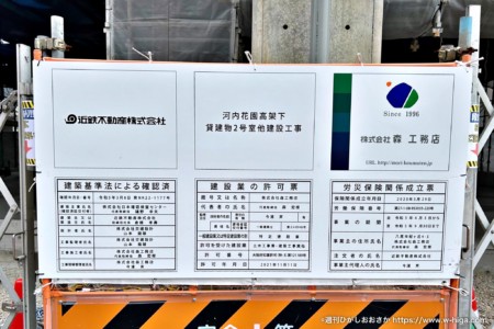 「河内花園高架下 貸建物2号室他建設工事」と書かれています。