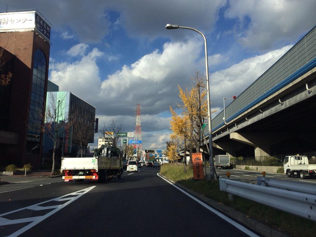 東大阪市荒本西1−5付近。中央環状線を北向きに走行し、意岐部跨道橋を超えて側道へ。渋滞ポイント。。。。だったのは過去の話。跨線橋の拡幅などで、混まなくなりました。
