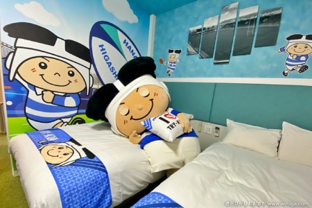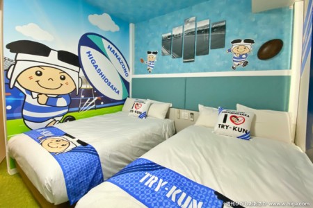ラグビーフロアや産業アートフロアなど、泊まりながら東大阪を堪能できる長田の「ホテルウィングインターナショナルセレクト東大阪」。以前はFC大阪とコラボした宿泊プランを紹介しましたが、今回はあのマスコットキャラクターとコラボした部屋が誕生です。
