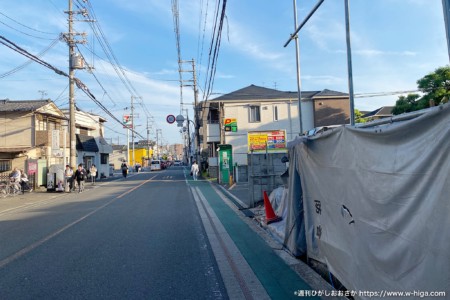 撮影方向に進むと八戸ノ里駅方面です。