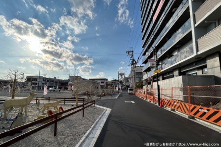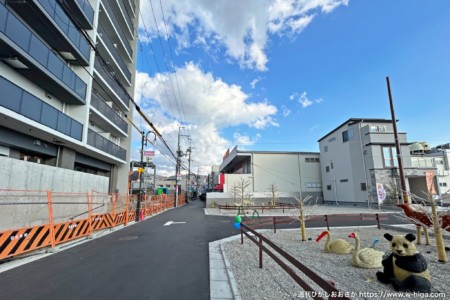 花園駅南側の商店街の窓口だった場所が、住宅地に変貌を遂げようとしている歴史の転換点。これから、駅前の人の流れは大きく変わっていきます。