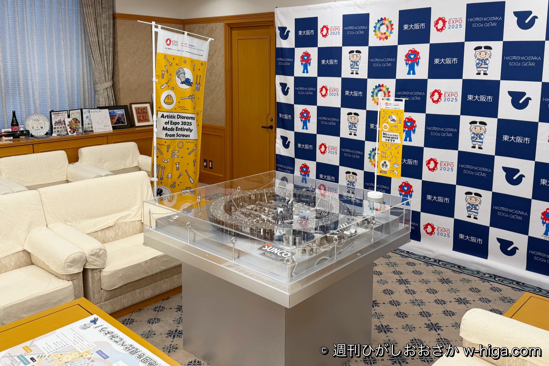 東大阪市役所の1階ロビーに、目が覚めるような銀色の塊が出現しました。その名も「ねじで作った大阪・関西万博会場ジオラマ」。ボルト、ナット、ワッシャー…現場で見かけるあのパーツで、万博会場をド直球に立体化。遠目に“お、模型かな?”と近づいた瞬間に“え、全部ねじ!?”と二度見しちゃうギャップが襲ってきます。作ったのは東大阪市にでっかい物流センターを持つねじの専門商社「サンコーインダストリー株式会社」。いつものことですが、全力投球でやり切った感がすごい。