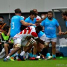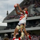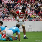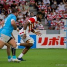 ライナーズのアタック時には、密集周りよりも「エッジ」と呼ばれるグラウンドの端で待つことが多かったワクァ。202cmの巨漢でありながら、ライナーズ内でも上位の脚力で自由奔放に抜き去っていく彼のプレーは、残念ながらウルグアイ戦では見ることはできませんでした。