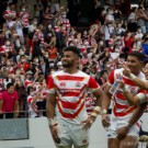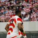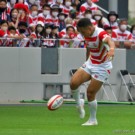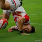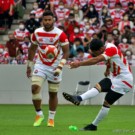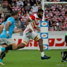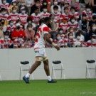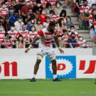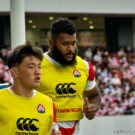 フィフィタは11番で出場。いわゆる「トライを取るのが仕事」と言われるWTB(ウィング)で、キックオフからよく前に出てディフェンスでもアタックでも”らしさ”を見せます。前半終了間際から少しプレーに絡むことが少なくなりましたが、相変わらずのパワーとスピードを披露。日本中なラグビーファンに、自身がなくてはならない選手だと再認識させます。