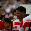 サナイラ・ワクァ。代表合宿に呼ばれたことさえはじめてのフィジー出身の26歳は、NDSも飛び越えていきなりの一軍19番。LO(ロック)の控えで、長身を活かしたラインアウトでのジャンパーは必須の仕事です。他にも密集周りで相手選手の前進を止めたりラックでの押しあいに参加したり。とにかく体を張ることが求められるので
