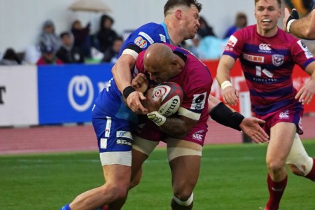 後半序盤、ライナーズのミスで自陣深くに攻められると、ブルーシャークス・7バシャムがラインアウトからモールでトライ。ゴールも成功し10-7と逆転を許します。