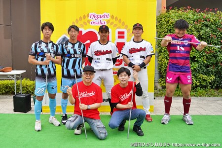 ステージのゲストにはFC大阪、大阪ゼロロクブルズ、花園近鉄ライナーズの東大阪を拠点に活動する3チームと、布市のねじメーカー安達鋼業の社員さんにお越しいただきました。