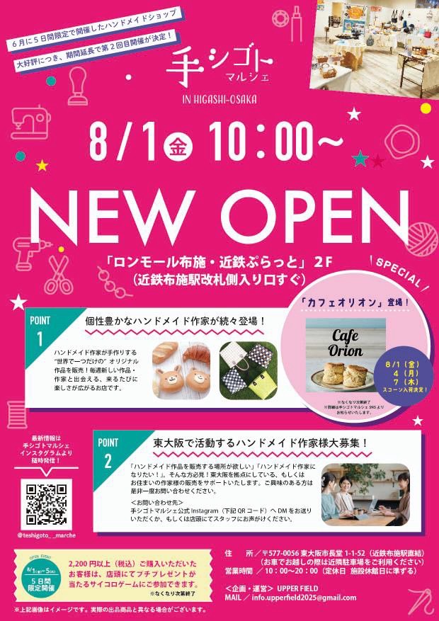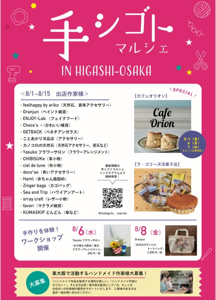 [マルシェ・ワークショップ]8/6(水)・8/8(金) 手シゴトマルシェ IN HIGASHIOSAKA ワークショップ