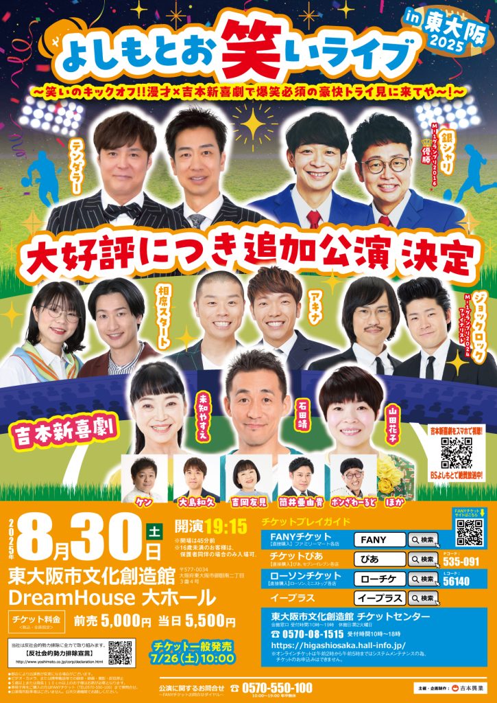 [お笑い]8月30日(土) よしもとお笑いライブin東大阪2025~笑いのキックオフ!!漫才×吉本新喜劇で爆笑必須の豪快トライ見に来てや~!~