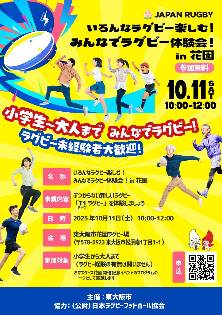 | 対象 | 小学生から大人まで(ラグビー経験の有無は問わない) |