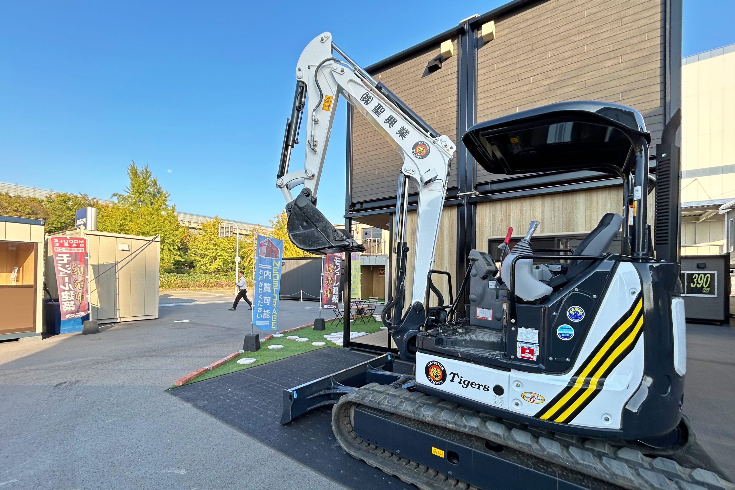 今年プロ野球のセ・リーグを優勝した阪神タイガース柄のミニユンボ(ショベルカー)も登場。