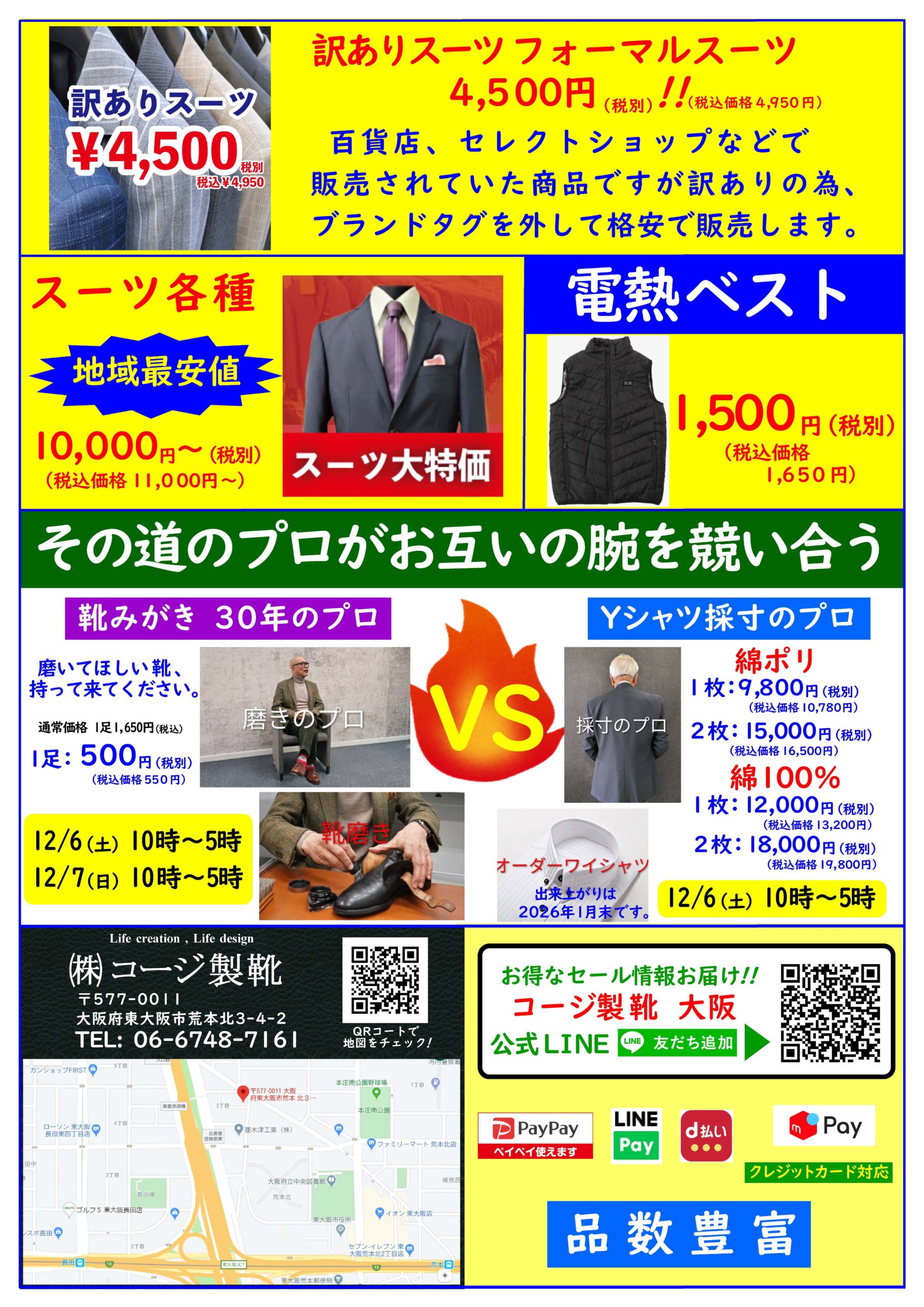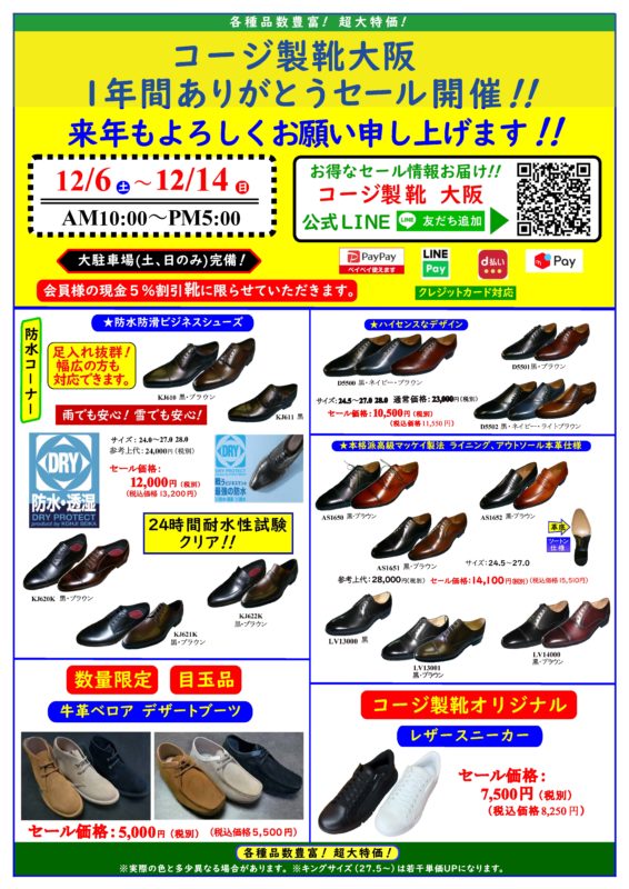 ■コージ製靴 1年間ありがとう倉庫直売セール