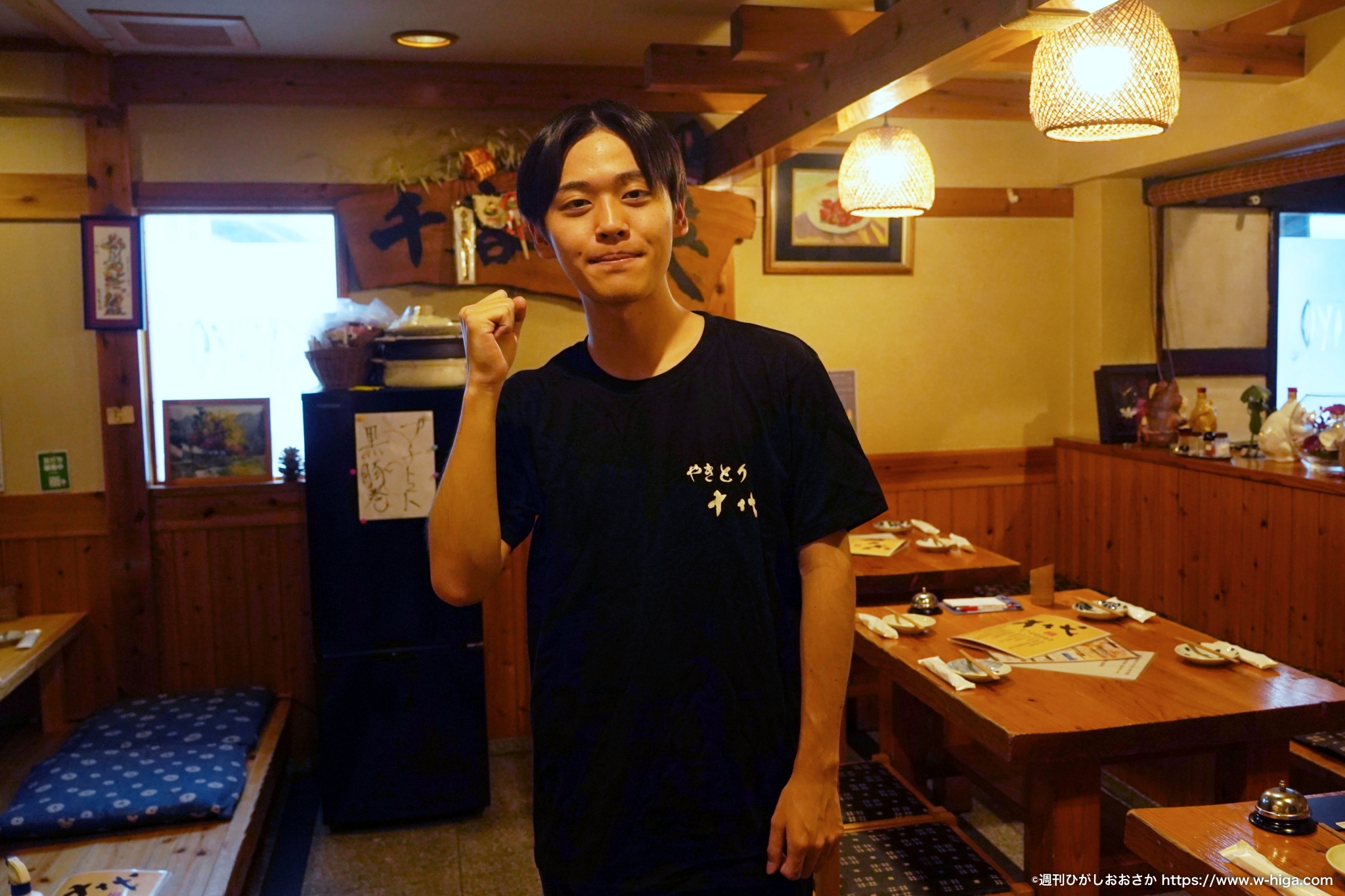 お話を聞いたのは、大学1回生の瀧方さん。「やきとり千代」が初めてのアルバイト先だそうです。