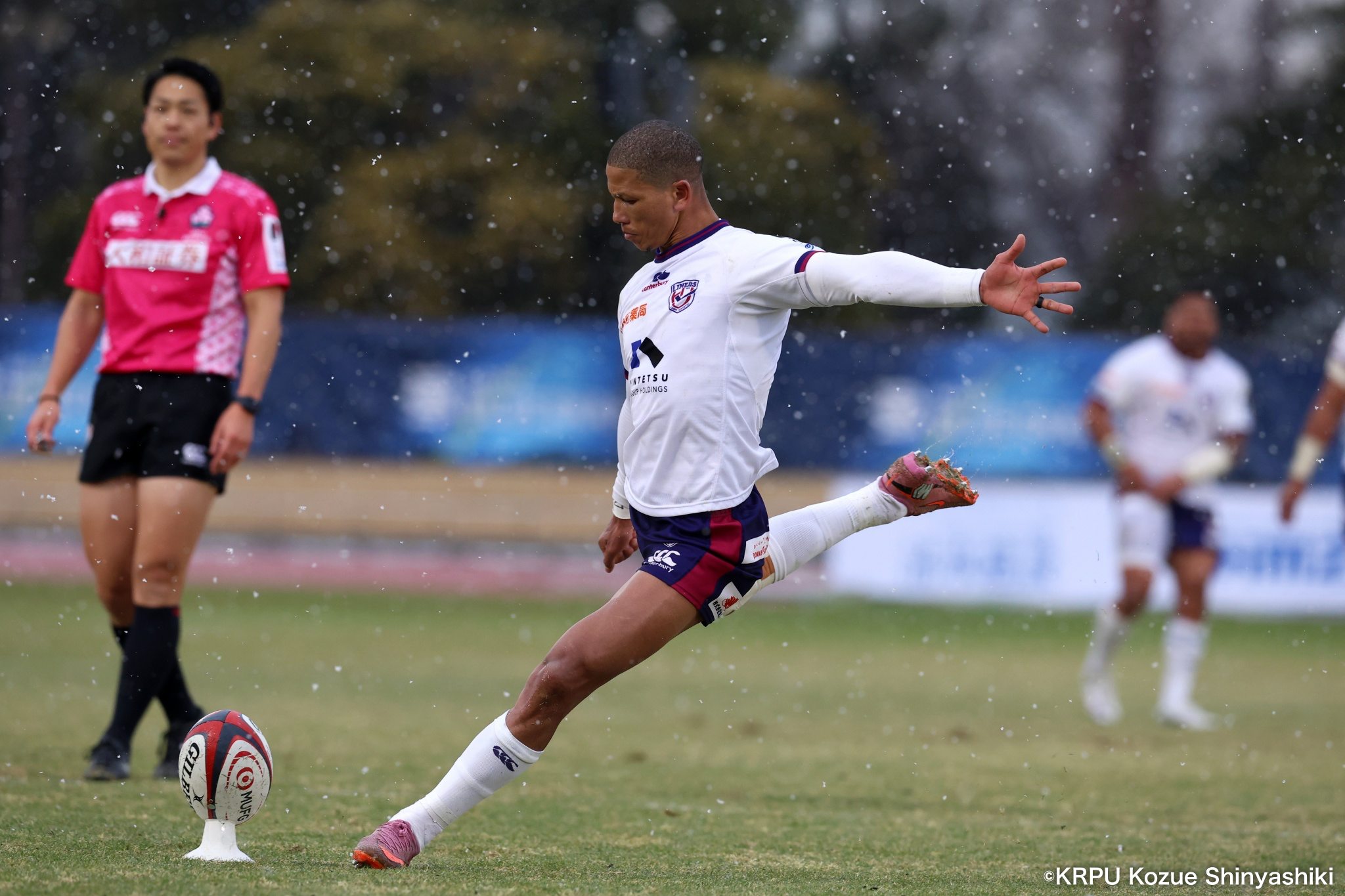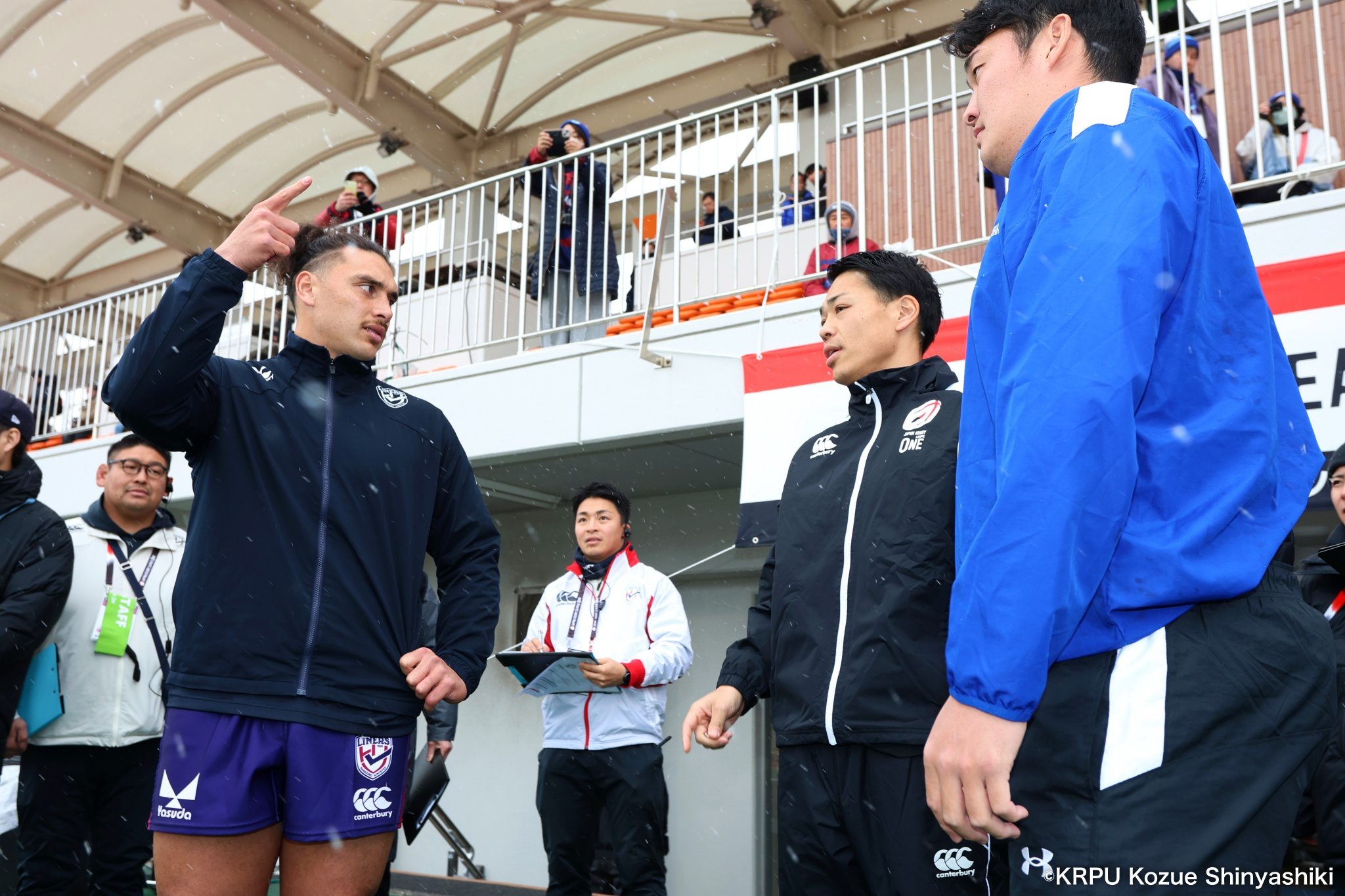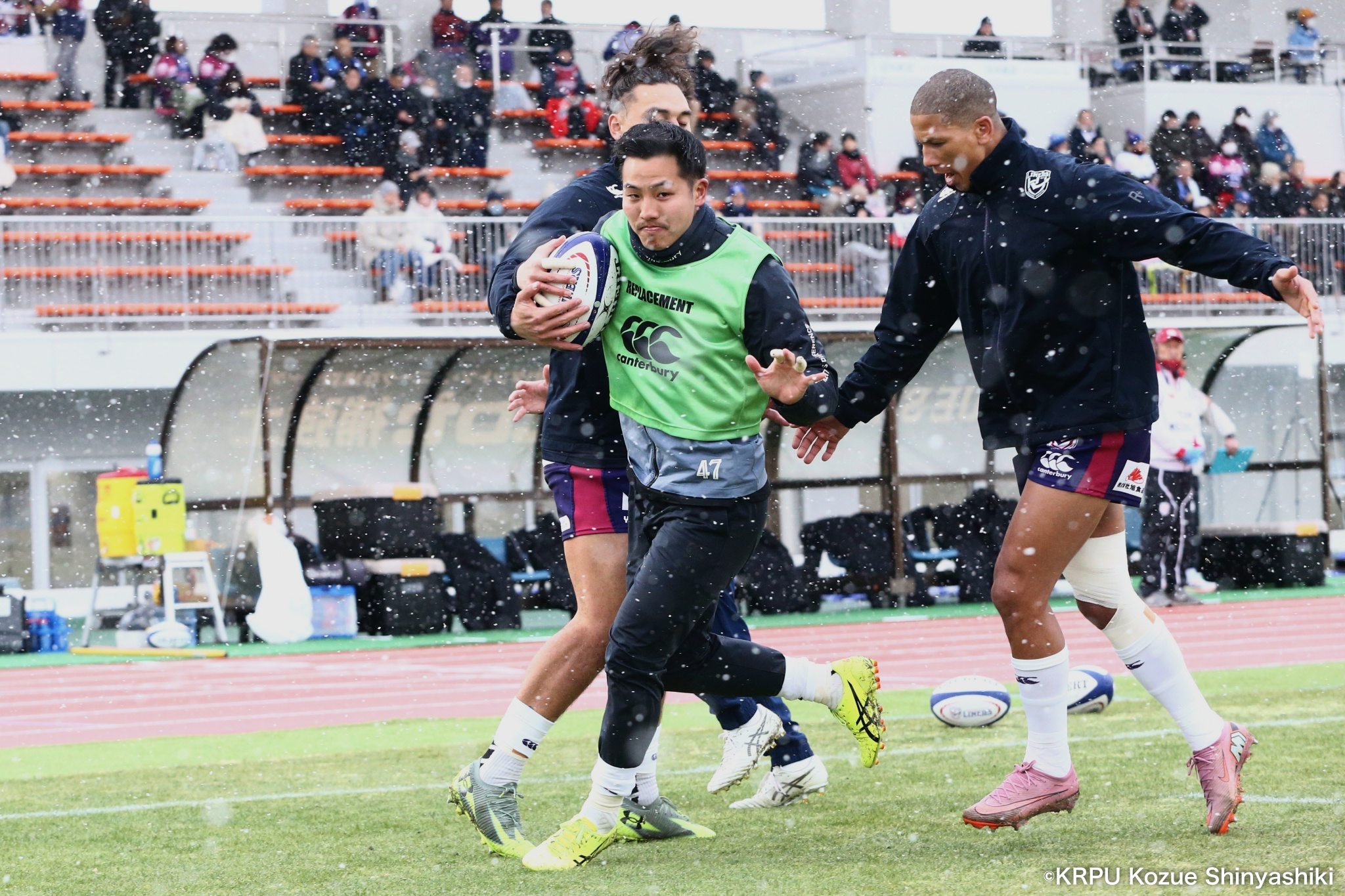 吹雪の中で行われた、JAPAN RUGBY LEAGUE ONE 2025−26 Div2第5節。