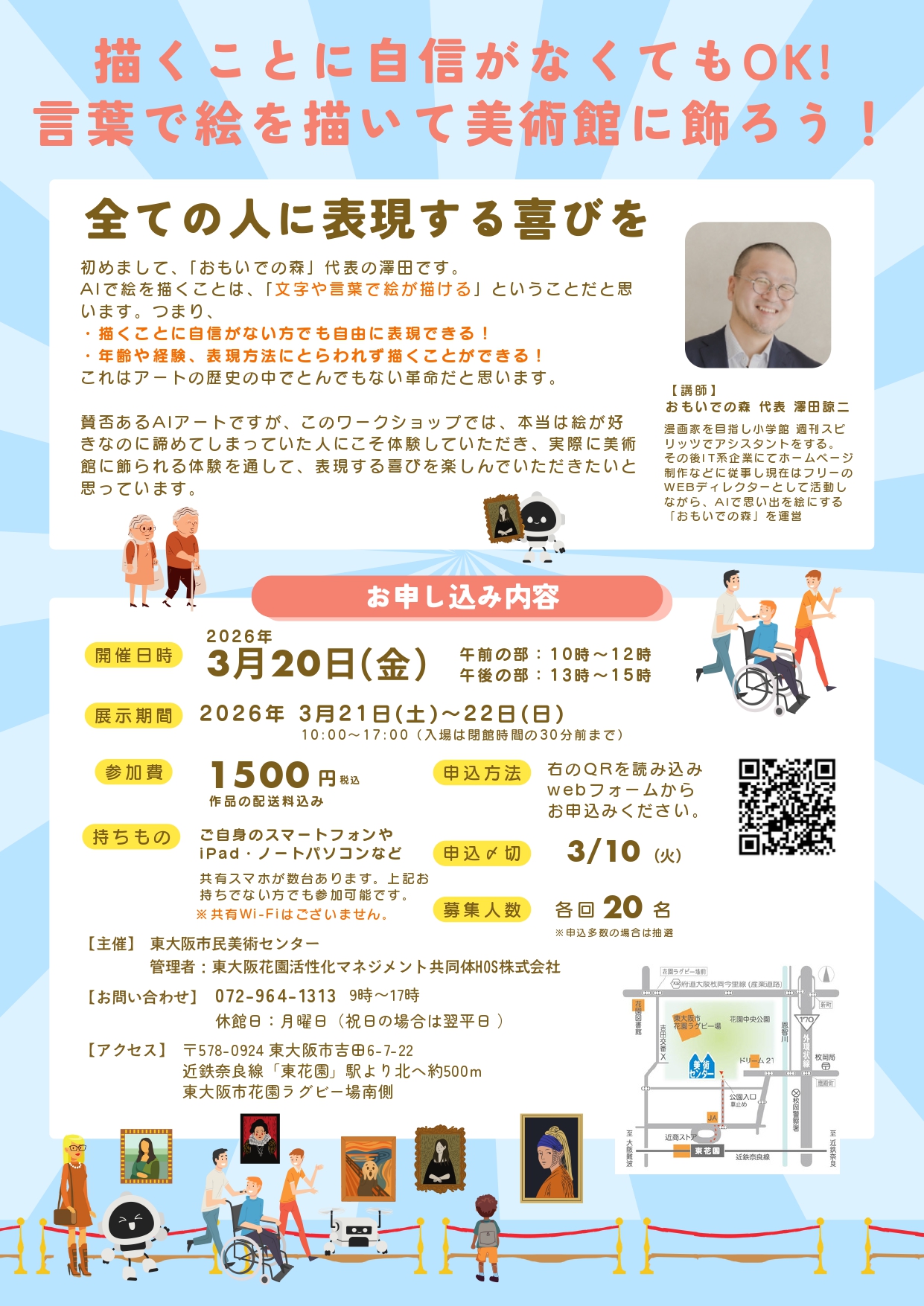 [アート] 3/20(金・祝) ことばで絵を描いて美術館に飾ろう!AIアート体験ワークショップ