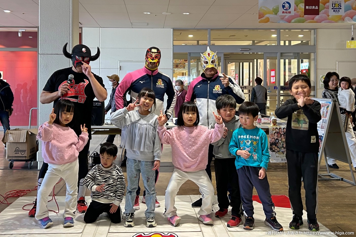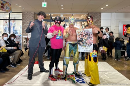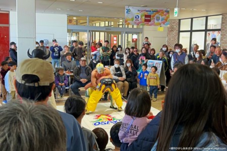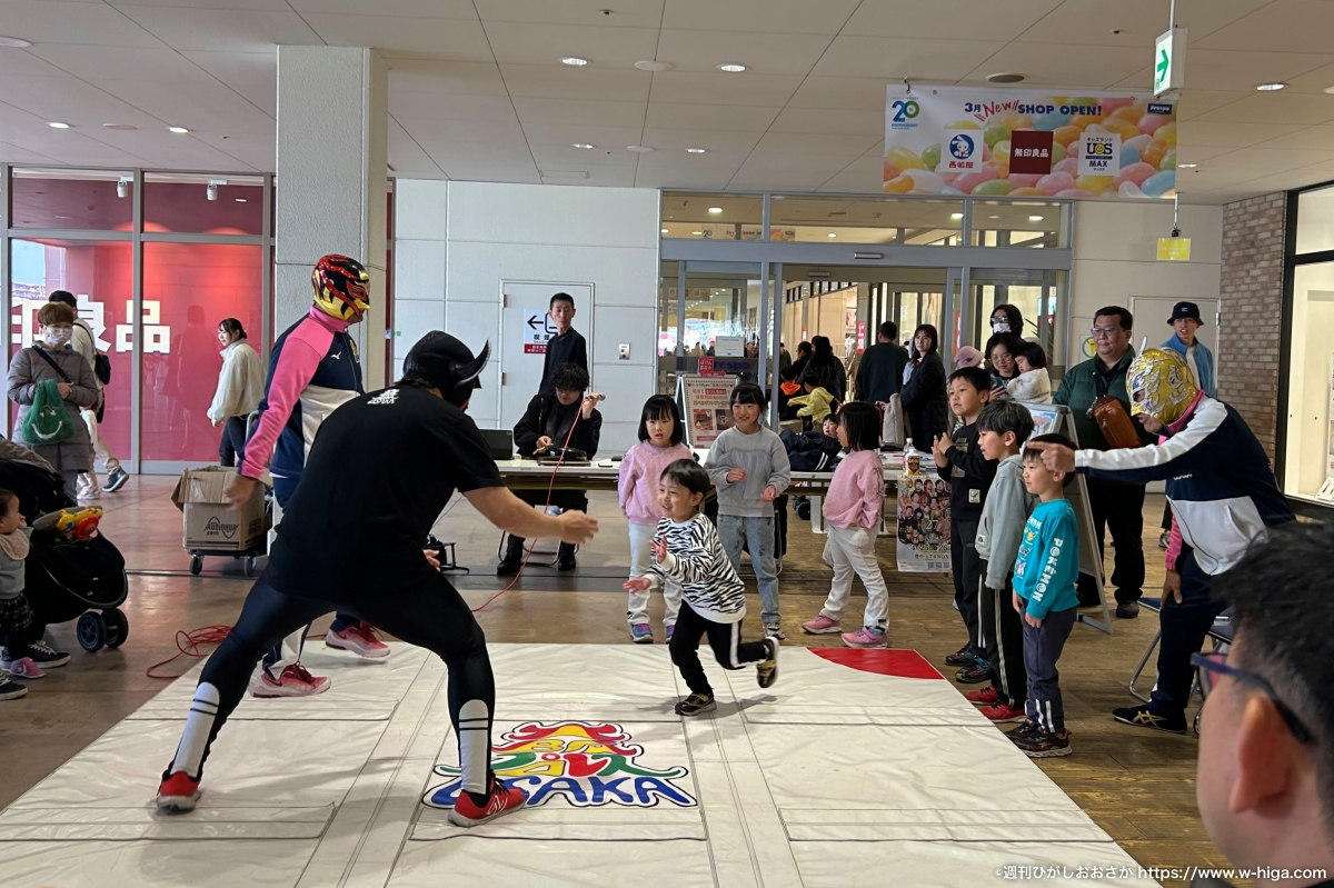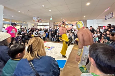 メインイベントとして開催した「マットプロレス」では、通りがかった買い物客が足を止めて観戦する姿も多く見られ、2階エレベーター前が人で埋まるほどの盛況ぶり。