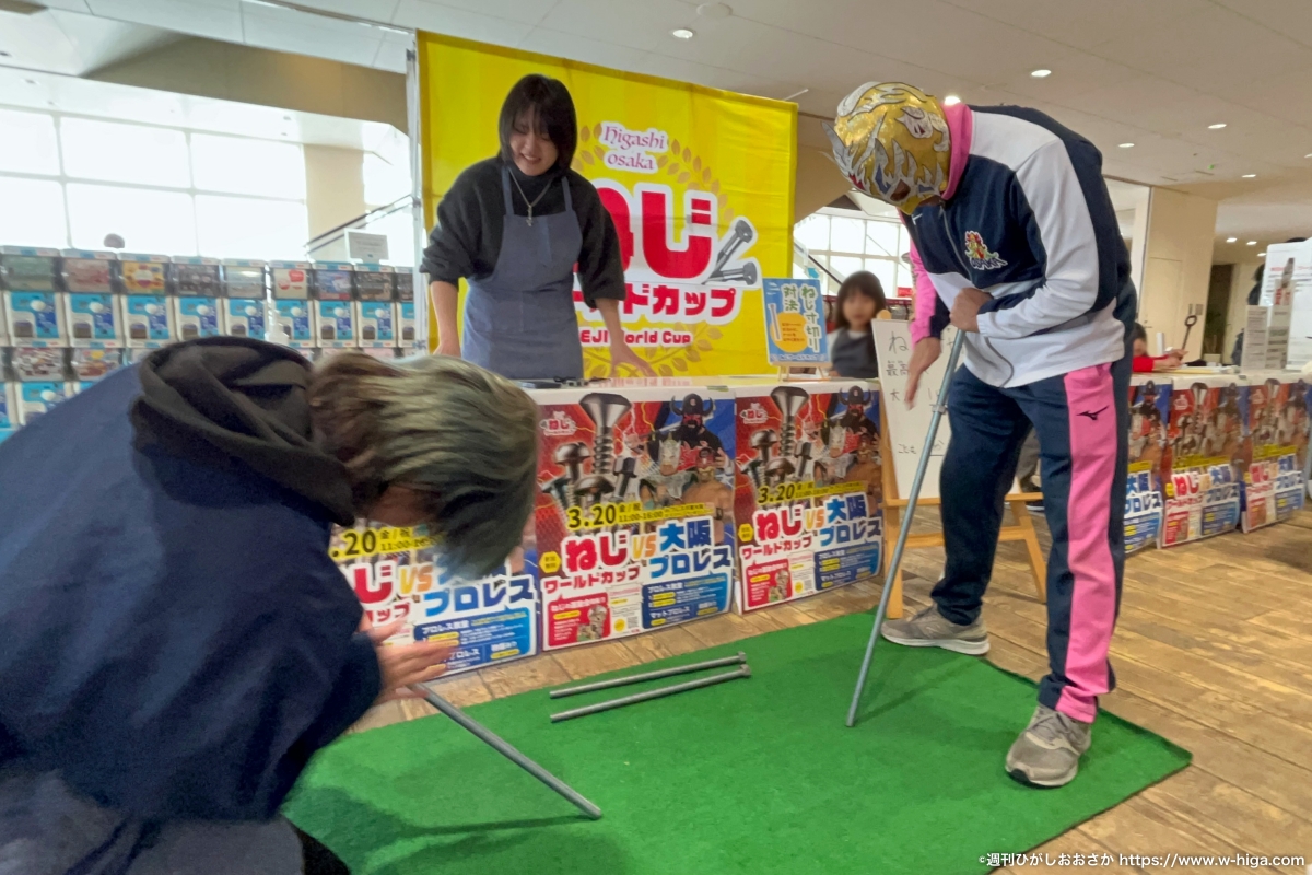 3月20日(金・祝)、週刊ひがしおおさかはフレスポ東大阪にて異色のコラボイベント 「ねじワールドカップ vs 大阪プロレス」 を開催しました。