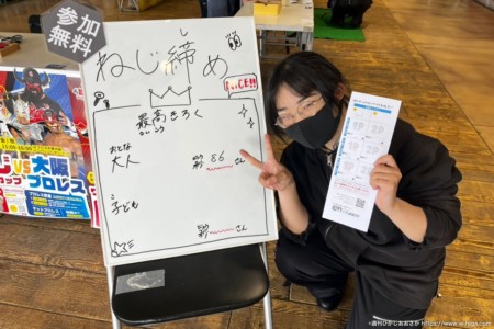 本物の製品を使ったねじの運動会「ねじワールドカップ」と、パワーとエンタメを兼ね備えた人気団体「大阪プロレス」によるプロレス教室&マットプロレスが同空間でコラボレーションするこの企画。昨年秋に初実施し、今年で2回目となります。