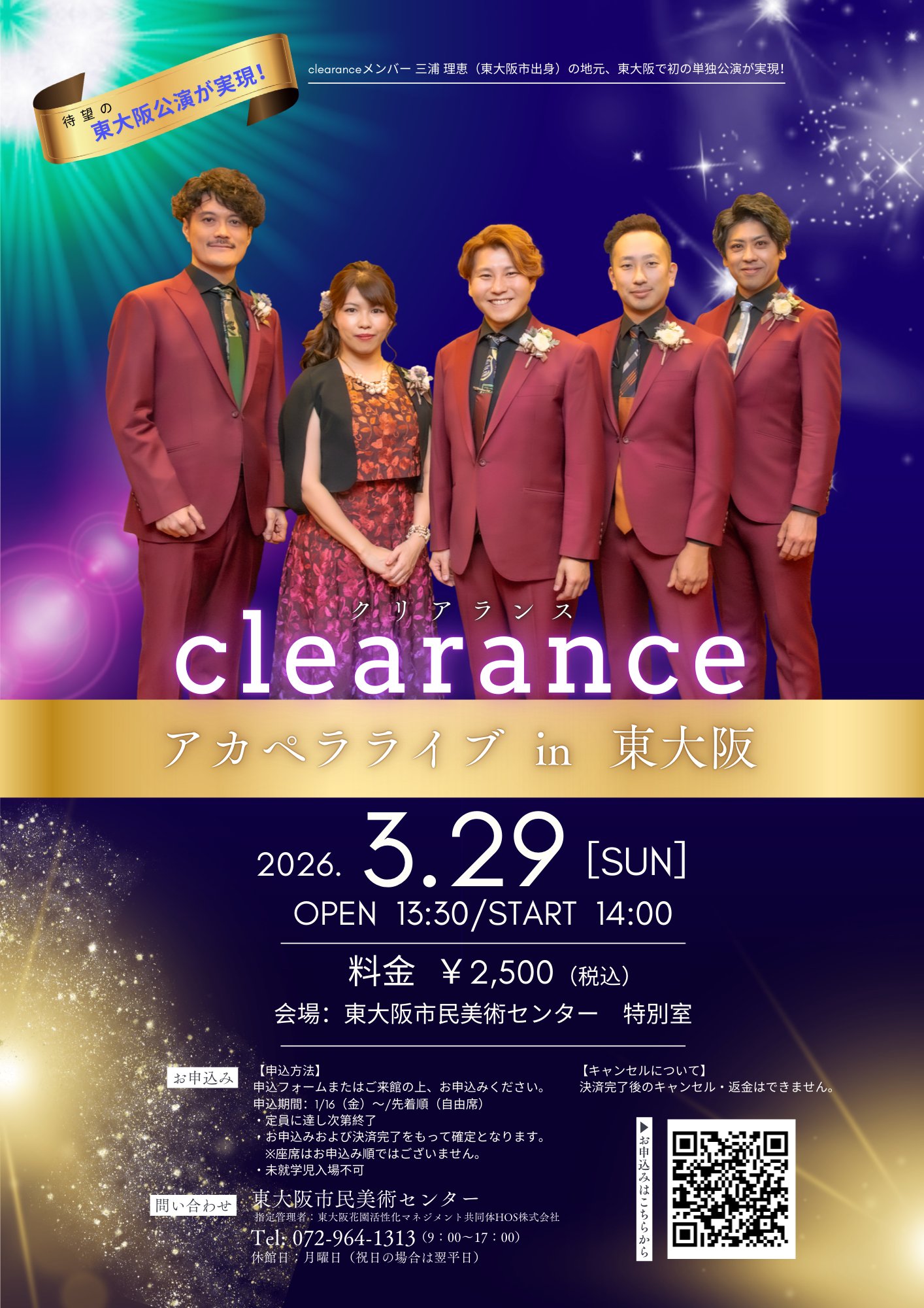 [音楽] 3/29(日) clearanceアカペラライブ in 東大阪