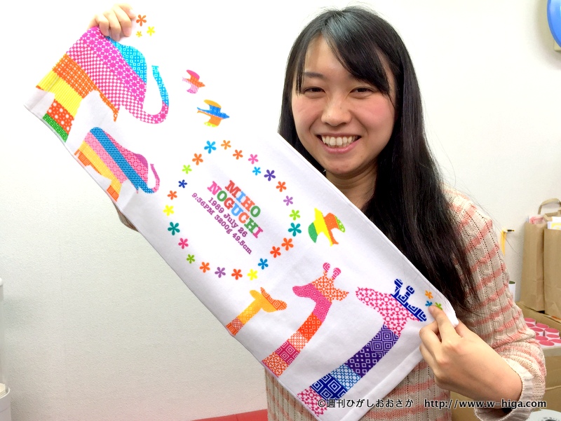 タオルは高級タオルで有名な今治製。出産祝いのほか、入園・入学祝いなどにも利用されています。「赤ちゃんの肌でも安心で、色落ちしにくいんです。タオルは使い道が多いので、好みに関係なく使ってもらえますね」と、社長の藤崎在(あり)さん。