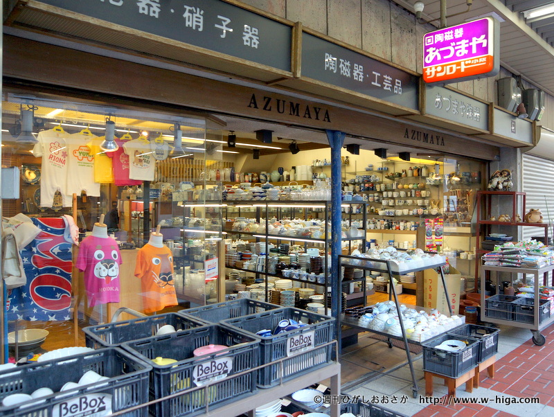 オンライン販売では珍しく、ショールームがあるという「ココロコ」。案内してもらったのは、「サンロード小阪」商店街内にある「あづまや陶器」でした。えっ、陶器屋さん?