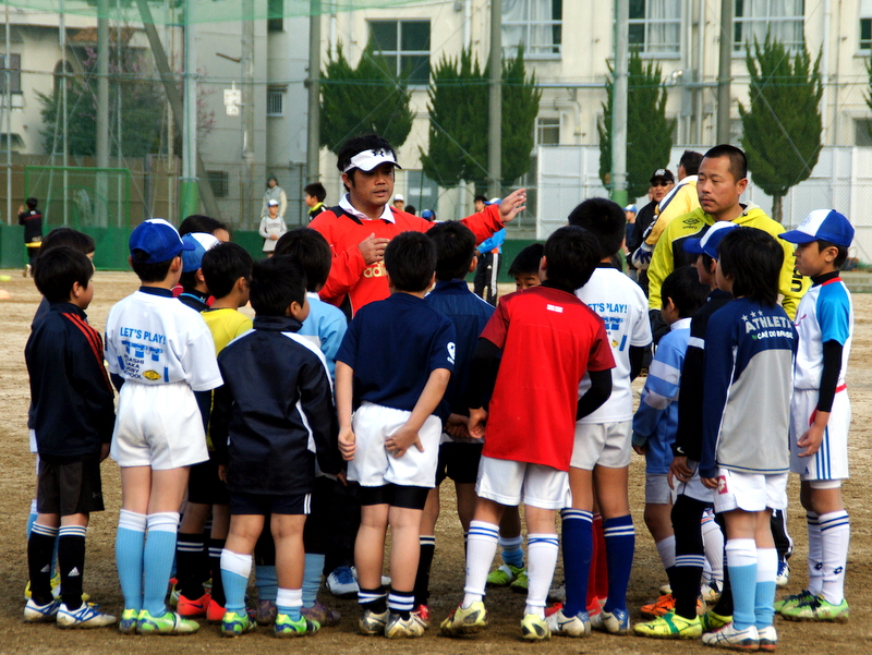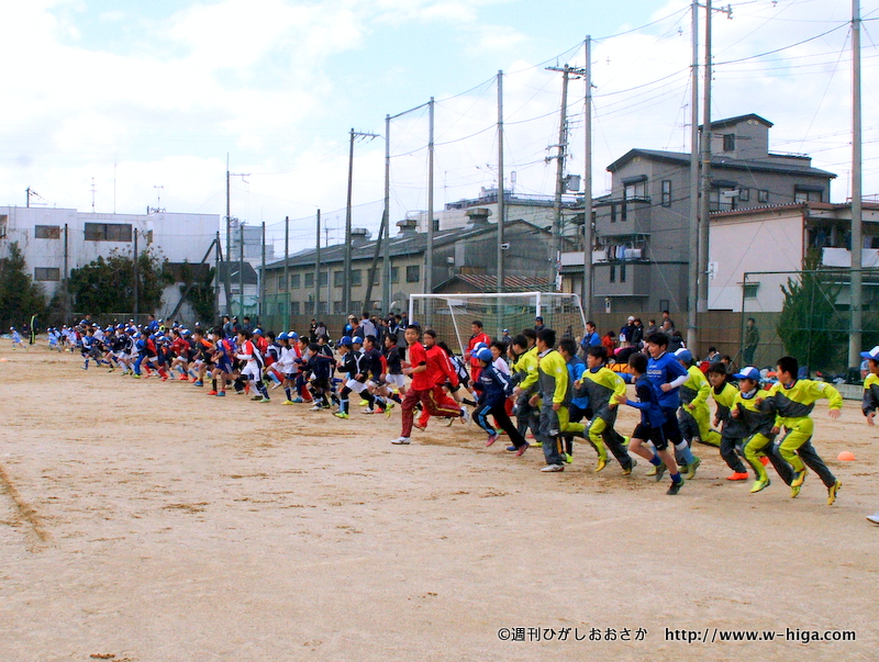 グラウンドの端から端まで、子供たちがズラリ。「スクール」という響きに、50名程度を想像していた記者。しかし、現在スクール生は、幼児から小学生合わせて160~170名と東大阪一。