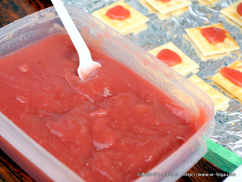 今回販売のジャムは、昨年8月に収穫した実を冷凍保存し、祭りに合わせて炊いたもの。限定100個がみるみるうちに売れていきました。