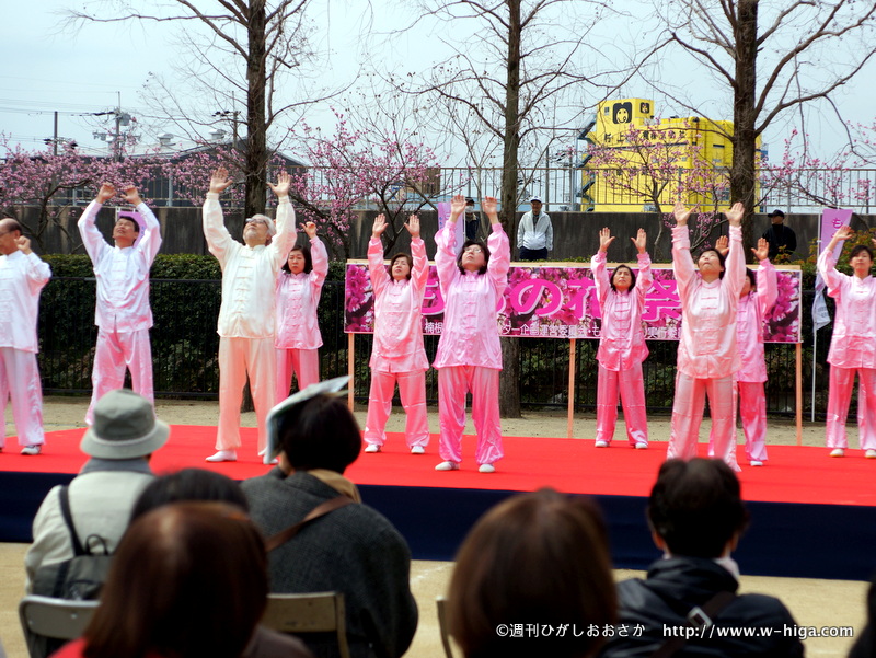 そして東大阪でももといえば「稲田もも」。薄ピンクの花が満開の中、楠根小学校で毎年恒例の「ももの花祭り」が開催されました。