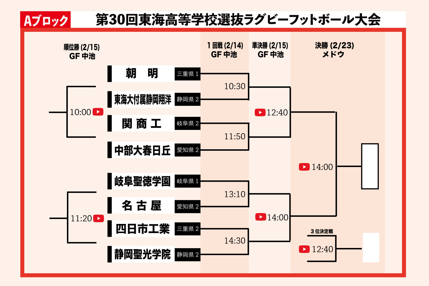 - 第30回東海高等学校選抜ラグビーフットボール大会 週ひがS指定席ライブ配信特設サイト