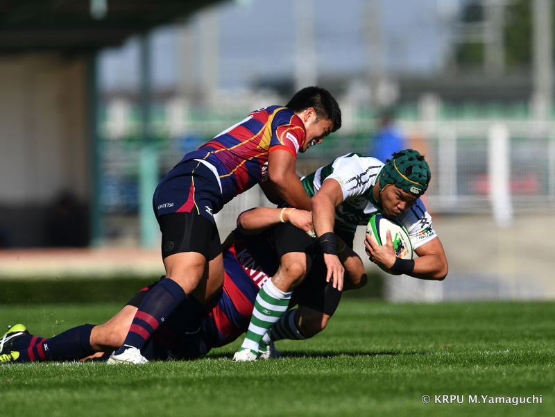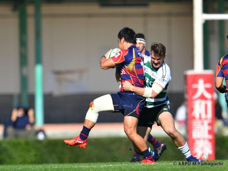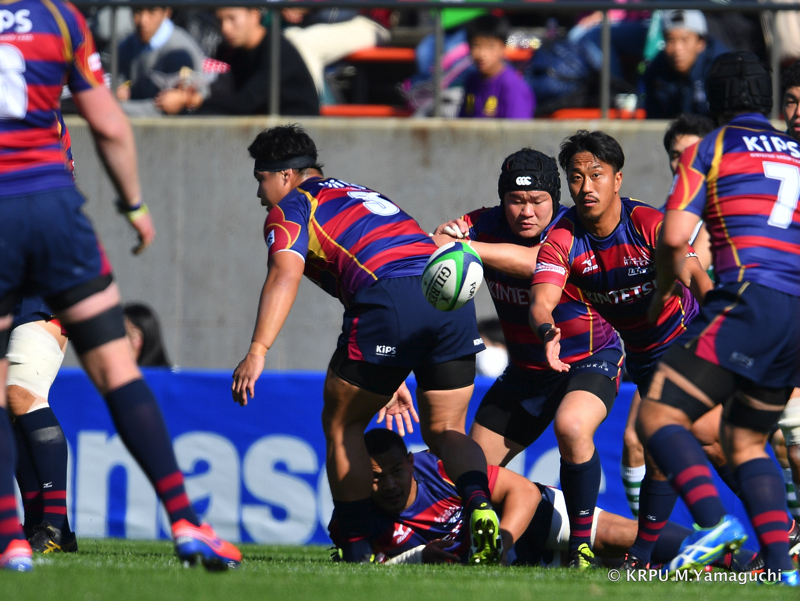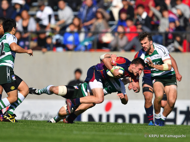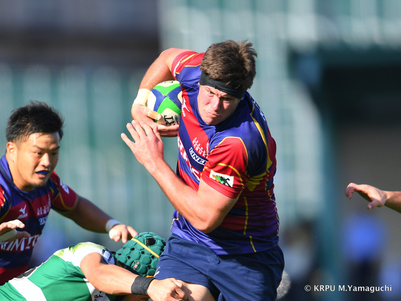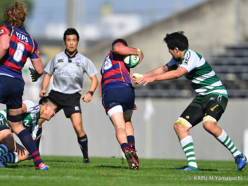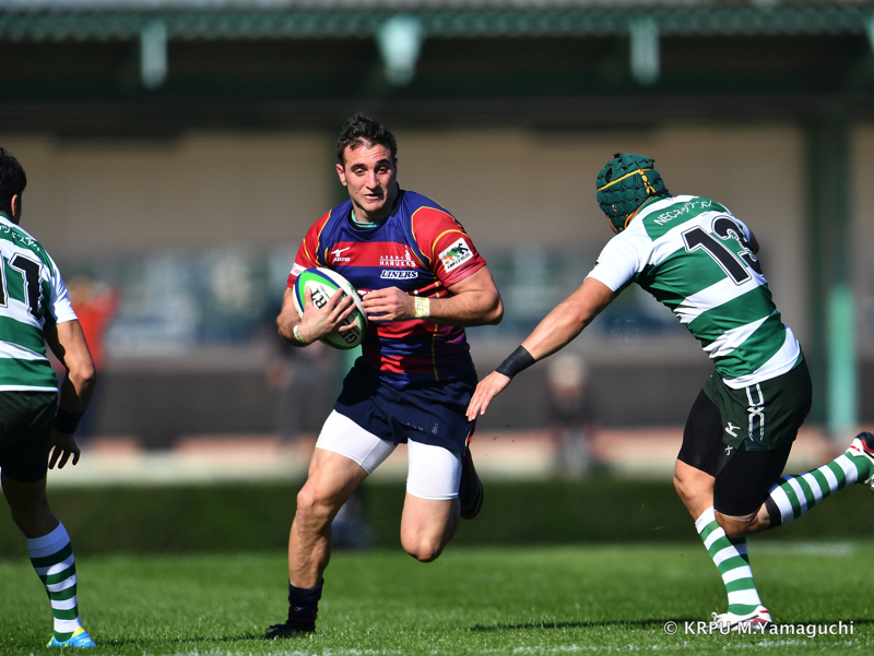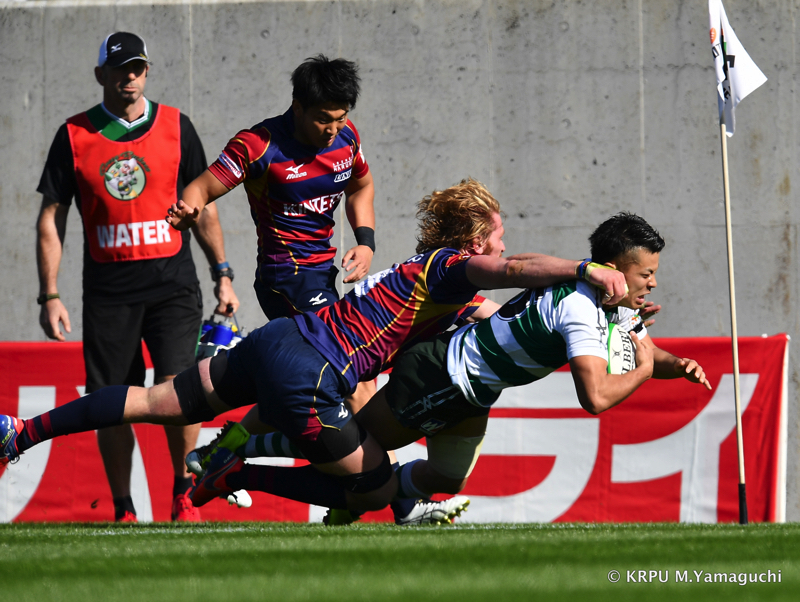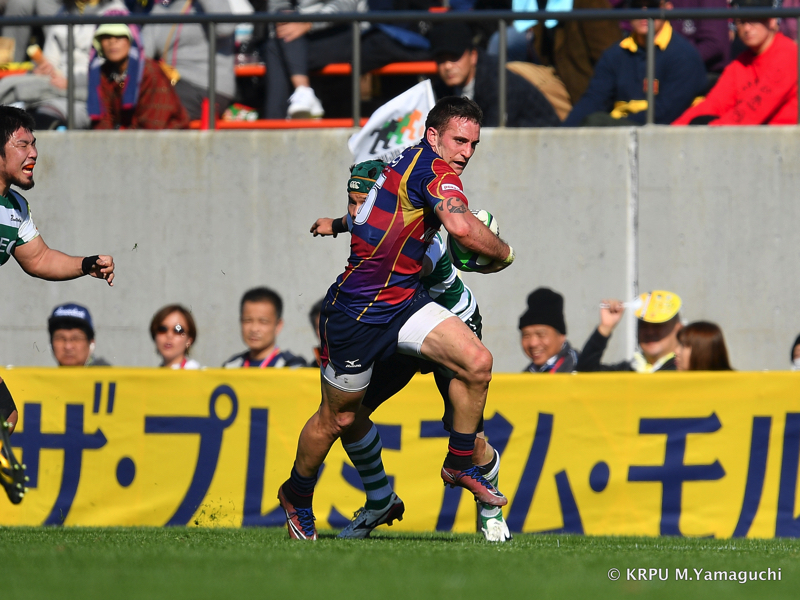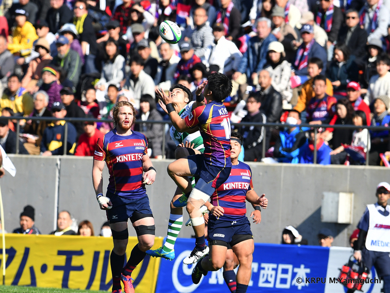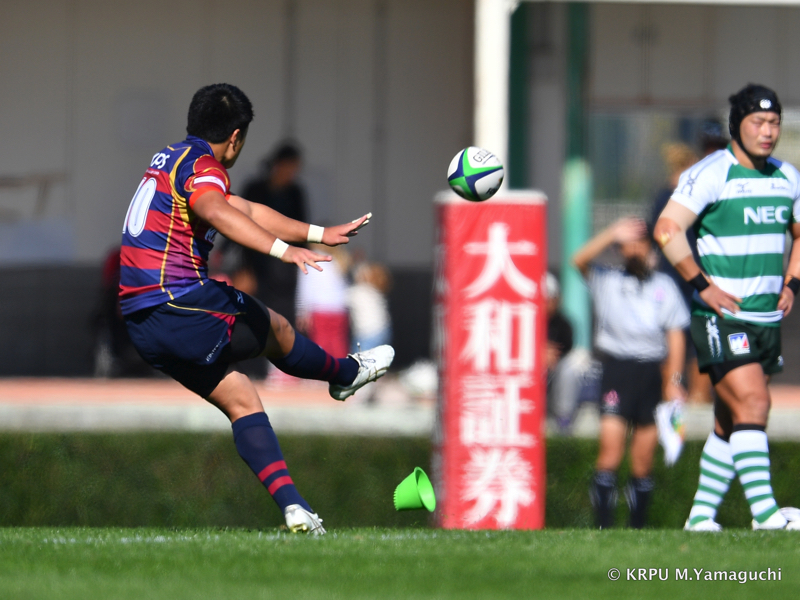その後ライナーズは、15テイラーのトライと10野口のキックで得点を重ね、16-26。10点ビハインドと、苦しいながらも追いかけることができる差で折り返します。