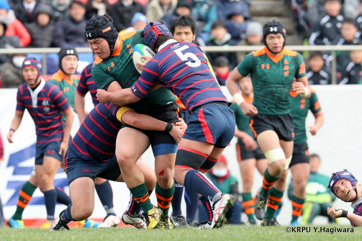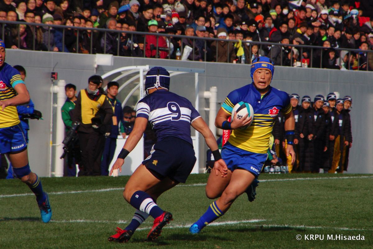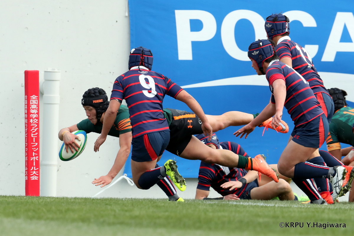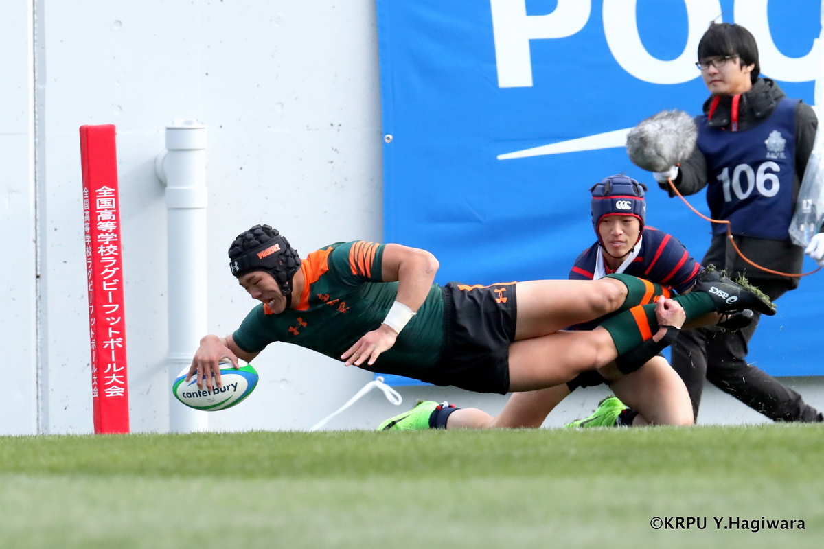 試合開始早々、仰星は10三村のキックからトライを奪う。報徳も反撃するが、仰星は試合が進むごとにテンポアップ。報徳のディフェンスが後手に回り前半だけで5トライを献上する。後半の入りで仰星が連続してトライを奪い、勝負あり。報徳も後半は3トライを返すが及ばなかった。