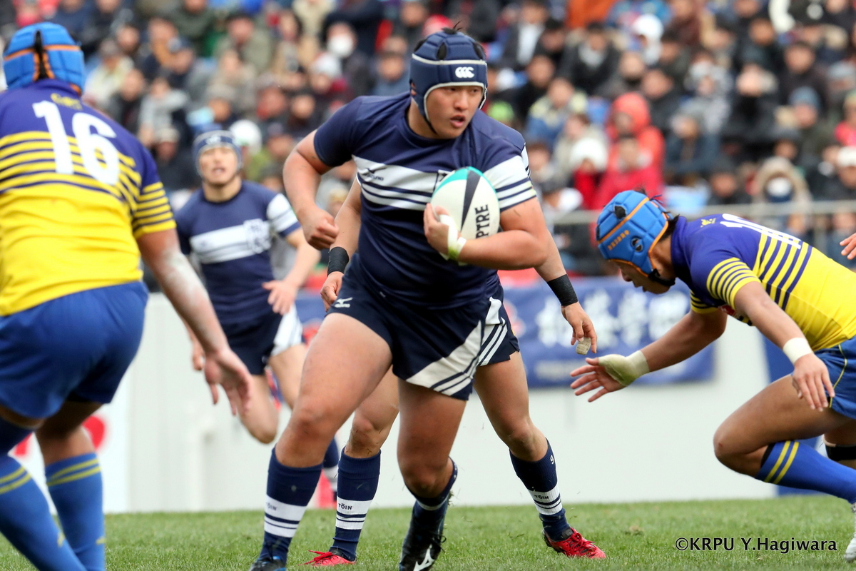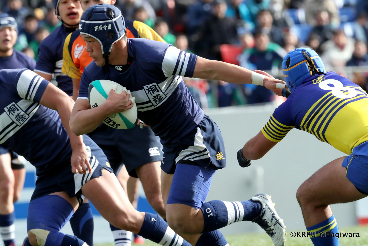 Aシード対決は、点差が開く決着。大きくて強いFWで確実に前進する桐蔭に対し、成章は2トライを奪うもののなかなかゲインできない。