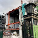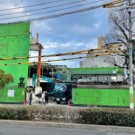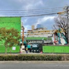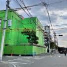 高井田で「東大阪のホワイトハウス」と呼ばれるミカミ工業株式会社の社屋およびショールーム。緑色の幕で覆われ、解体作業が進められているのです。