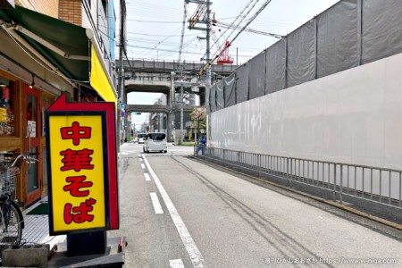 高井田系ラーメン店「さるぱぱ」の道路を挟んで西隣で、沿いにはメディアで引っ張りだこの中華料理店「八戒」が並ぶなど、永和の人気コンテンツが揃った場所です。