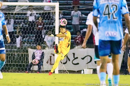 前半唯一のピンチは39分、MF深川大輔の放ったミドルシュートがゴール上のバーに直撃。スーパーゴールを決められかけましたが、失点はせず試合を折り返します。