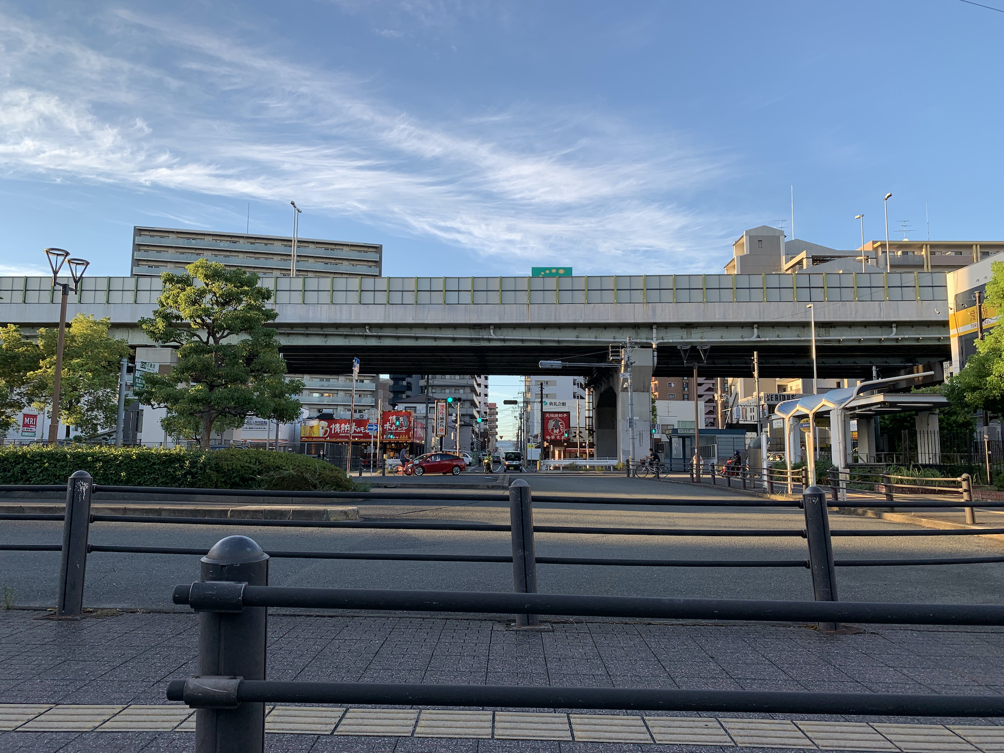 正解は、、、〒577-0022 大阪府東大阪市荒本新町5付近。近鉄荒本駅南バスターミナルの南端から北交差点に向かって撮影。朝から晩まで、すごい交通量です。奥に見えるのは、情熱ホルモンと大阪王将。
