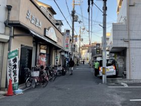 正解は、、、〒577-0818 大阪府東大阪市小若江1-17-14付近。近鉄長瀬駅の東の銭湯「永盛温泉」を左手に北に向かって撮影しまし…