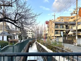 正解は、、、〒577-0807 大阪府東大阪市菱屋西4-5付近。長瀬川を北に向かって撮影しました。