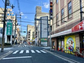 正解は、、、〒577-0016 大阪府東大阪市長田西2-6付近。国道308号・中央大通りの「長田交差点」を西から東に撮影しました。