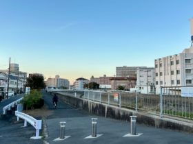 正解は、、〒578-0944 大阪府東大阪市若江西新町2-2付近を北に向かって撮影しました。北西方向に伸びているのは第二寝屋川。右手側…