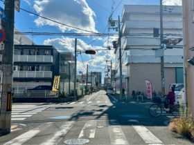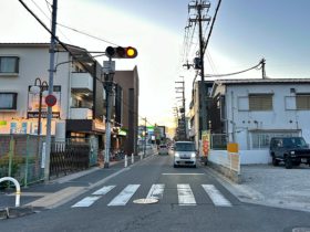 正解は、、〒578-0984 大阪府東大阪市菱江1-16付近から南へ向かって撮影しました。正面の奥に見えてる赤信号は、河内警察署前交…