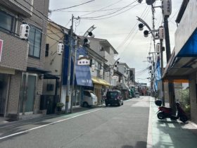 正解は、、〒578-0948 大阪府東大阪市菱屋東2−13付近、暗越奈良街道を若江岩田の商店街(岩田北本通り商店会)に向けて撮影しま…