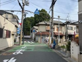 正解は、、〒577-0013 大阪府東大阪市長田中3-2付近、長田中公園を左手に南に向かって撮影しました。後方にはパチンコ店「キコーナ…