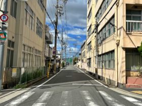正解は、、、〒577-0807 大阪府東大阪市菱屋西2-8付近。近鉄大阪線長瀬駅北側にある駐輪場を左手に南へ向かって撮影しました。…