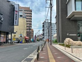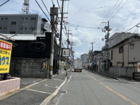 正解は、、、〒577-0846 大阪府東大阪市岸田堂北町2付近、北八尾街道を北に向かって撮影しました。まっすぐ行くと銭湯「桃の湯」を通…