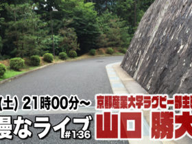 週ひががご機嫌にラグビー関係者と対談するYoutube企画「冗漫なライブ」。第136回は「関西大学リーグ主務さん登場回シリーズ」の第4回、京都産業大学ラグビー部主務・山口勝大さんにご出演いただきます。