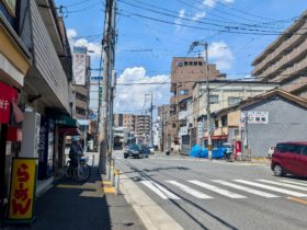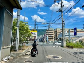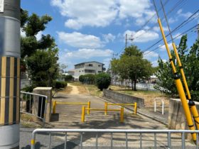正解は、、、〒579-8053 大阪府東大阪市四条町1-14付近を東へ向かって撮影しました。左手(北)方向に進むとジンジャモール瓢箪山商…